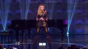 Se sul red carpet Madonna si è mostrata con passo fiero e sicuro, sul palcoscenico qualcosa invece l’ha resa più fragile: l’emozione ha avuto la meglio ed il tanto atteso discorso della Lady è risultato un fiume in piena di parole toccanti, dette con l’animo di una artista che cavalca l’onda del successo discografico da ben 34 anni.