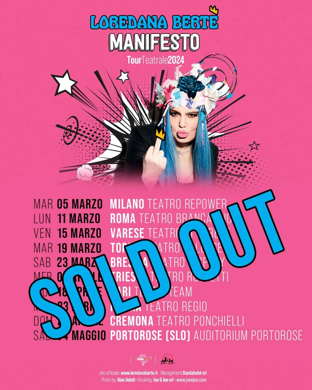 Il prossimo tour teatrale, iniziato trionfalmente a Milano il 5 marzo, si svilupperà in una prima parte in diverse date lungo la penisola, avrà poi una versione americana a primavera inoltrata e nella prossima estate toccherà diversi luoghi di villeggiatura italiani. Instancabile, festeggia i suoi 50’ anni di carriera discografica cantando in un tour che si preannuncia memorabile. Siamo tutti figli di Loredana!
